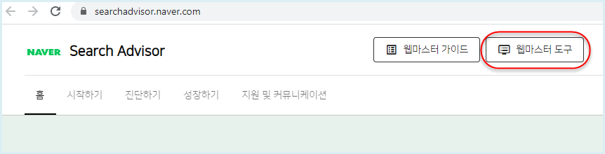 창을 켜고 "웹마스터 도구"를 눌러 주세요 :)