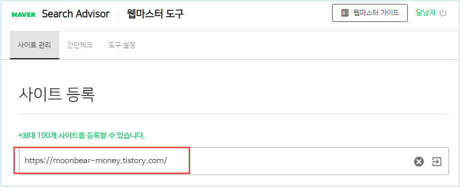 이후 사이트 등록을 먼저 해주시기 바랍니다.