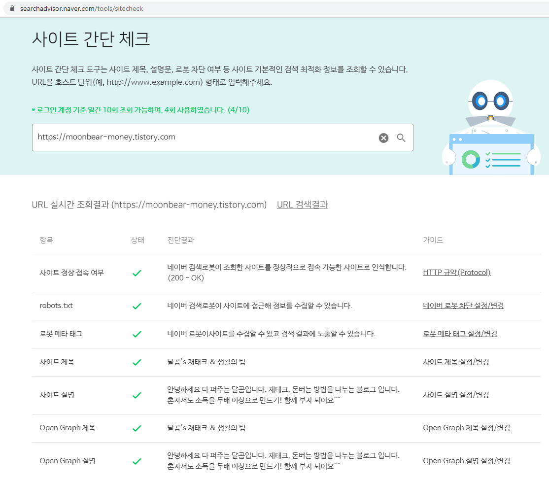 그럼 검색 최적화가 잘 되었는지 확인을 하기 위해,