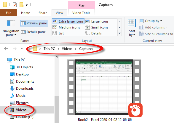 위 캡쳐에서 '파일 위치 열기'를 누르시거나, '내PC - 동영상 - 캡처'로 가면 촬영된 녹화 영상을 확인 가능하답니다~