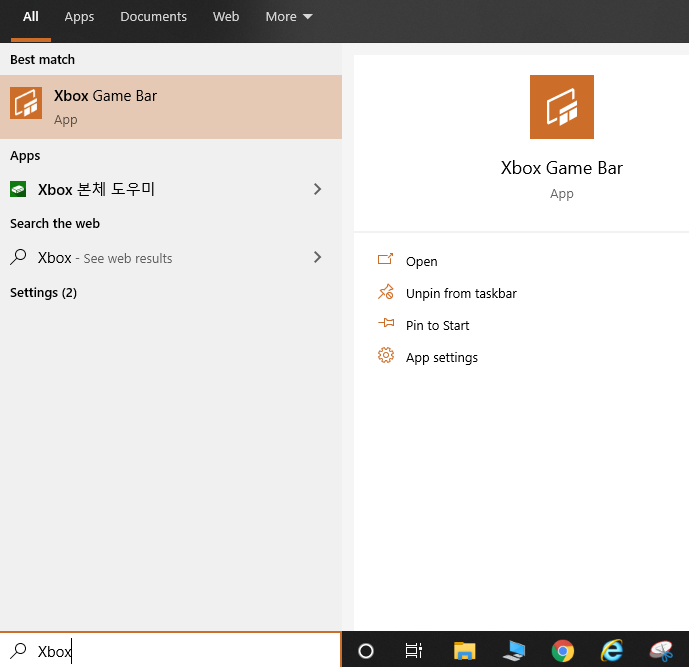 Window를 이용한 화면 녹화는 바로 Xbox Game Bar 라는 프로그램을 사용합니다.