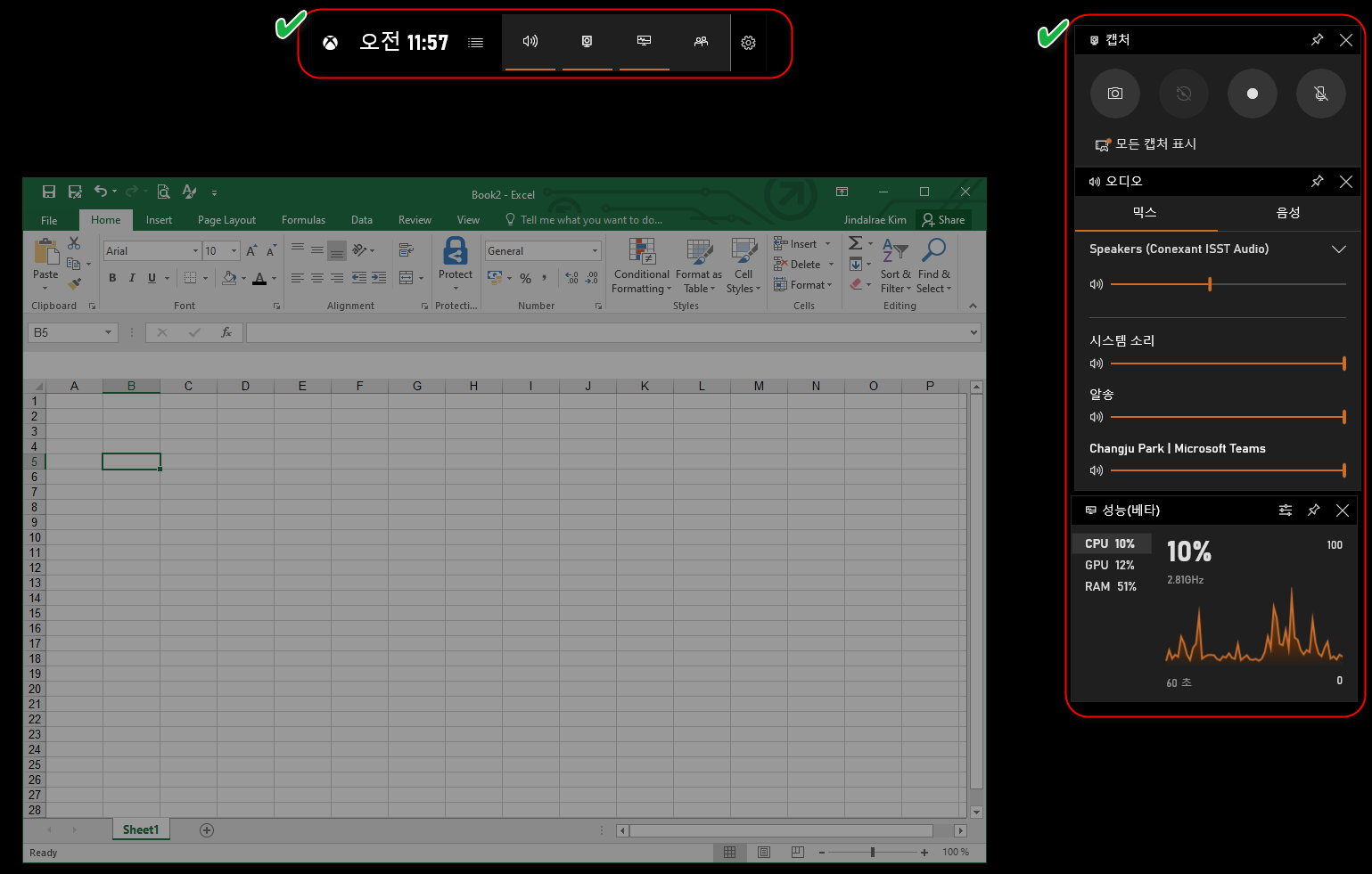 1) 키보드에서 WINDOW+G를 눌러주면 바로 실행 됩니다. (이게 가장 빠르고 쉬운 방법)